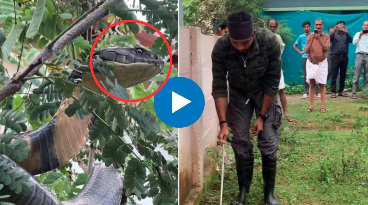 कर्नाटकात एक व्यक्ती घराबाहेर पडला असता घराजवळ असलेल्या एका झाडाच्या फांदीवर त्याला एक महाकाय असा कोबरा दिसून येतो. सध्या या कोबराचा संपूर्ण व्हिडिओ सोशल मीडियावर व्हायरल होत आहे.