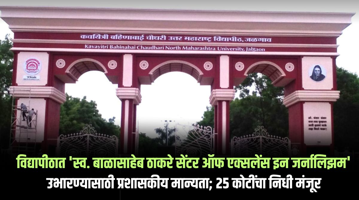 जळगाव । कवयित्री बहिणाबाई चौधरी उत्तर महाराष्ट्र विद्यापीठात “स्व. बाळासाहेब ठाकरे सेंटर ऑफ एक्सलेंस इन जर्नालिझम” उभारण्यासाठी महाराष्ट्र शासनाने मंत्रीमंडळाच्या बैठकीत तत्वत: प्रशासकीय मान्यता देवून त्यासाठी २५ कोटीचा निधी मंजूर केला आहे. या संदर्भात दि. १४ ऑक्टोबर रोजी उच्च शिक्षण विभागाचे उपसचिव प्रताप लुबाळ यांच्या स्वाक्षरीने शासन निर्णय जारी करण्यात आला आहे.