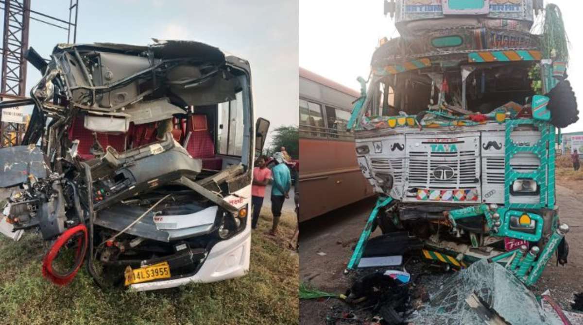 पंढरपूर । राज्यात अपघाताच्या घटना काही कमी होताना दिसत नाहीय. यातच आता पंढरपूर ते टेंभुर्णी या मार्गावरील भटुंबरे गावच्या हद्दीत पंढरपूर पासून सुमारे दोन किलोमीटर अंतरावर खाजगी बस आणि मालवाहतूक ट्रक यांच्यात आज रविवारी भीषण अपघात झाला. या अपघातामध्ये दोन भाविकांचा जागीच मृत्यू झाला असून अन्य सहा ते आठ भाविक जखमी झालेले आहेत. जखमी भाविकांना सामान्य रुग्णालयात उपचारासाठी दाखल करण्यात आलेले आहे. अपघातग्रस्त बस ही पुणे जिल्ह्यातील असून मयत भाविक मावळ तालुक्यातील आहेत अशी प्राथमिक माहिती पोलीस प्रशासनाकडून देण्यात आली.