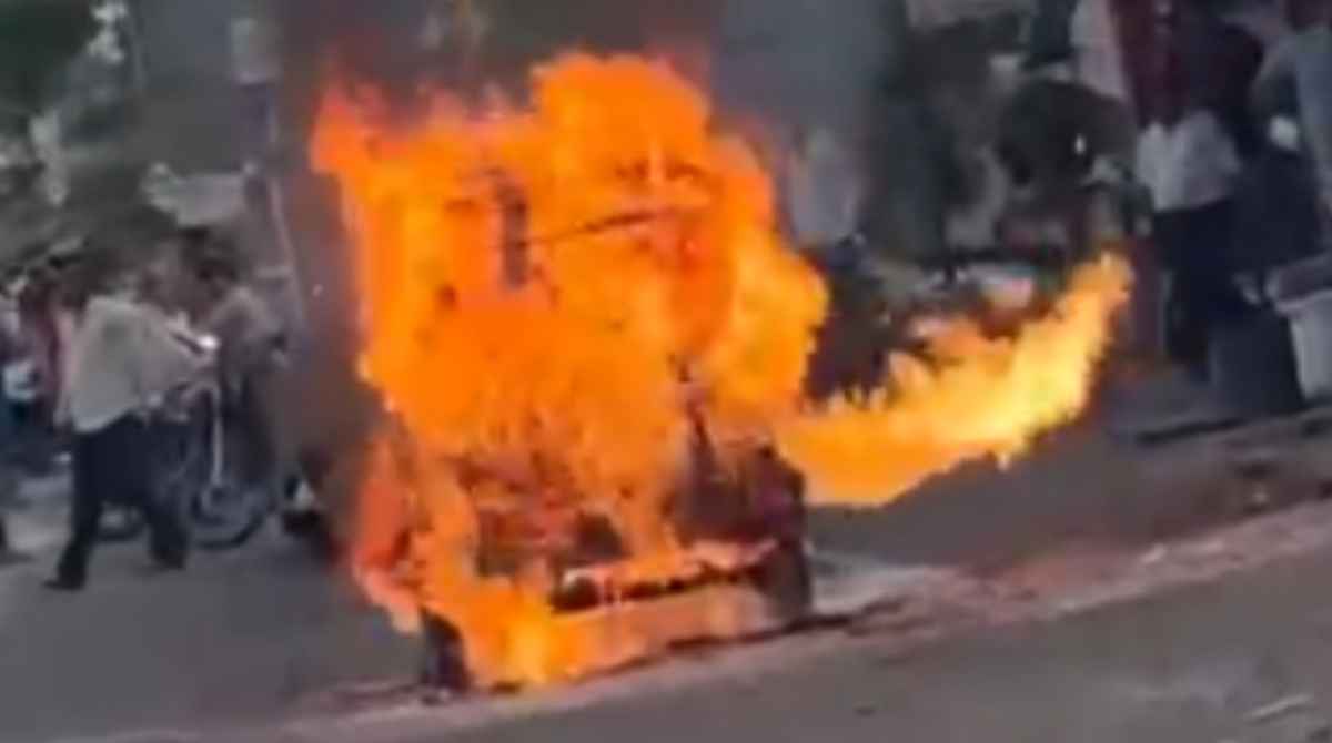 दरम्यान, गॅसच्या ज्वाळेमुळे अचानक रिक्षेला आग लागली. काही क्षणातच आगीने भीषण रूप धारण केल्याने परिसरात नागरिकांची मोठी गर्दी झाली आणि एकच खळबळ उडाली.