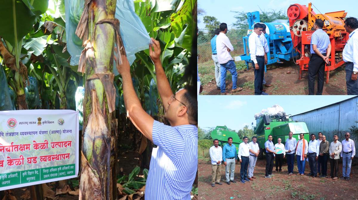 कृषी आयुक्तांनी यावेळी मौजे करंज शिवारातील धोंडीराम सपकाळे यांनी लागवड केलेल्या नवीन कांदे बाग प्रक्षेत्रास टिश्यू कल्चर तंत्रज्ञान व पारंपारिक कंद लागवड या बाबत उत्पन्नात होत असलेले फरक, वेळेची बचत आदी बाबत चर्चा केली. मौजे कानळदा कृषी यांत्रिकीकरण उपभियान योजने अंतर्गत श्रीमती आशाताई अशोक राणे यांनी खरेदी केलेल्या हार्वेस्टर या यंत्राची पाहणी करून माहिती जाणून घेतली. तसेच याच ठिकाणी प्रधानमंत्री सूक्ष्म अन्नप्रक्रिया उद्योग योजने अंतर्गत गोपाल सपकाळे यांनी उभारलेल्या सद्गुरु केळी प्रक्रिया उद्योग येथे भेट देऊन पाहणी करून माहिती घेतली.