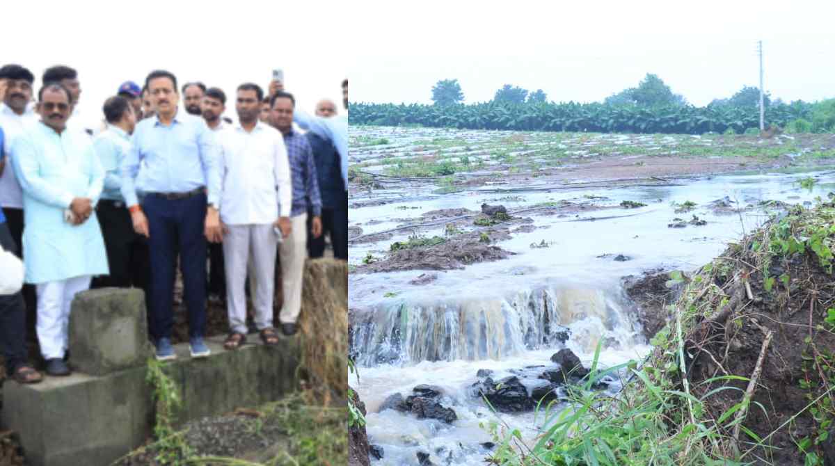 पाचोरा तालुक्यातील,शिंदाड, सार्वे बु., सातगाव या गावात अतिवृष्टीमुळे नुकसान झालेल्या भागाची पाहणी करताना मंत्री श्री महाजन यांनी स्थानिक शेतकऱ्यांशी, गावकऱ्यांशी संवाद साधून त्यांच्या समस्या जाणून घेऊन त्यांना धीर दिला. ते म्हणाले,शासन पूर्णपणे आपल्या पाठीशी असून शासनतर्फे नुकसानी संदर्भात लवकरच मदत दिली जाईल असे त्यांनी यावेळी सांगितले.