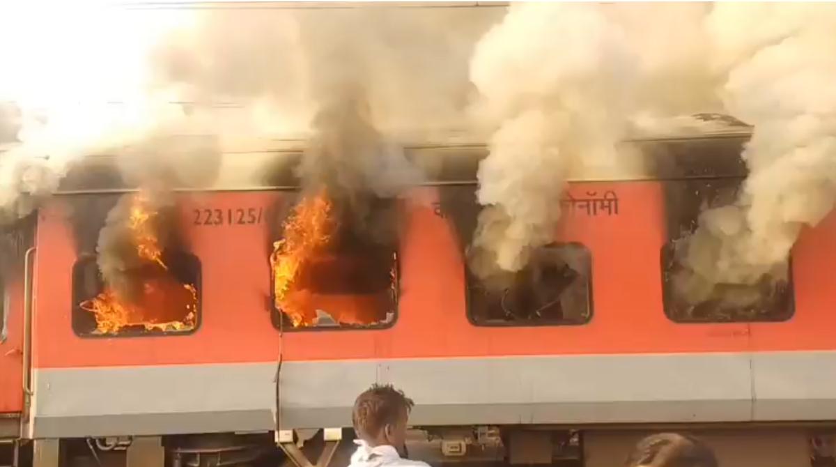 गरीब रथ एक्सप्रेसला भीषण आग, तीन डब्बे जळून खाक; प्रवाशांमध्ये भीतीचे वातावरण
