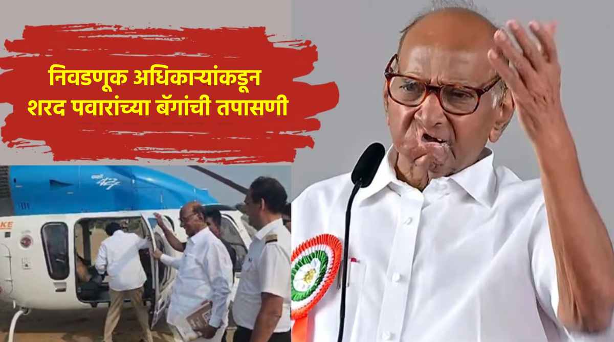 बारामती । महाराष्ट्र विधानसभा निवडणुकीचा प्रचार शेवटच्या टप्प्यात पोहचला असून राजकीय नेत्यांसोबत असणाऱ्या बॅगांच्या तपासणी निवडणूक अधिकाऱ्याकडून केल्या जात असून याच दरम्यान आज बारामतीमध्ये शरद पवार पोहचले होते. हेलिपॅडवर शरद पवार यांच्या बॅगांची तपासणी करण्यात आली.