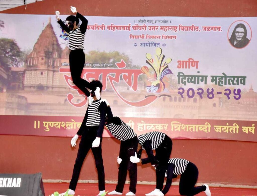 जळगाव । सामाजिक, विषयांवर मुकनाट्याद्वारे केलेले भाष्य , सुप्रसिध्द कलावंतांची मिमिक्री, राष्ट्र प्रेमाने भारावत सादर केलेले समुहगान, सुरवाद्य व तालवाद्यावर असलेली हुकमत आणि चित्र, व्यंगचित्राद्वारे केलेले कलात्मक सादरीकरण यामुळे कवयित्री बहिणाबाई चौधरी उत्तर महाराष्ट्र विद्यापीठाच्या प्रांगणात सुरू असलेला युवारंग युवक महोत्सव विशेष रंगला.