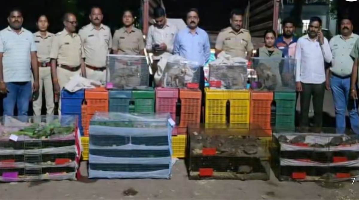 तस्करांनी पोलिसांची दिशाभूल करण्यासाठी ‘पुष्पा’ चित्रपटाप्रमाणे शक्कल लढवली होती. ट्रकमध्ये मागच्या बाजूला वरच्या थरात भाजीपाला भरलेले कॅरेट रचले होते, जेणेकरून कोणालाही संशय येऊ नये. मात्र, पोलिसांनी बारकाईने तपासणी केली असता, या कॅरेटच्या आड लोखंडी पिंजऱ्यांमध्ये वन्य प्राणी क्रूरपणे कोंडलेले आढळले.