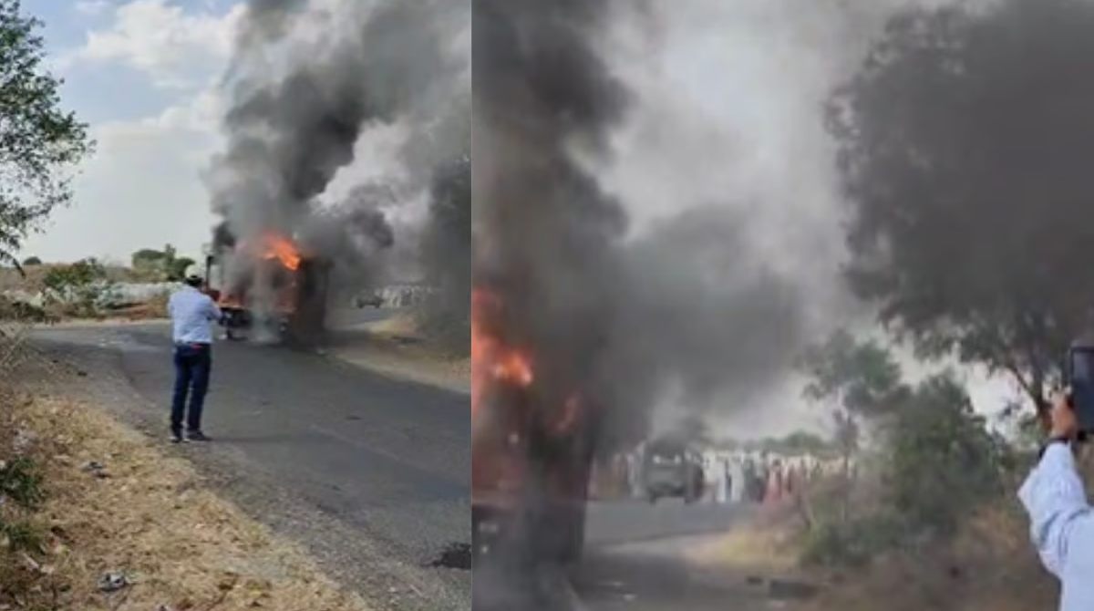नाशिकमध्ये पुन्हा बसला भीषण आग ; बस पूर्णत: जळून खाक