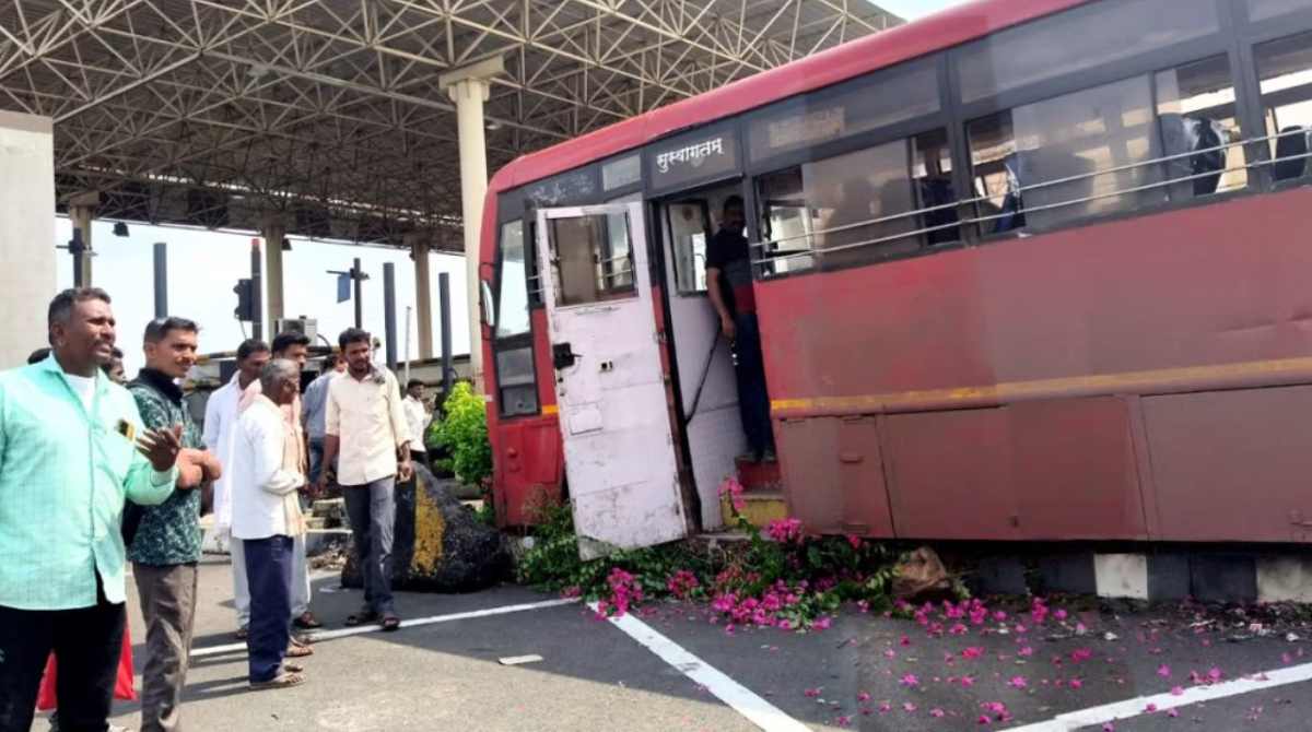टायर फुटल्याने एसटी बस थेट टोल नाक्याला धडकली ; प्रवासी महिला जागीच ठार