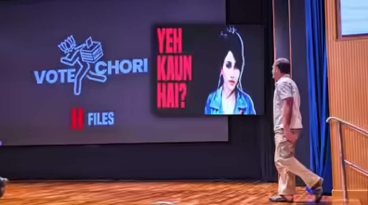 राहुल गांधींच्या पत्रकार परिषदेत एका तरुणीचा फोटो दाखवण्यात आला. या फोटोसोबत २२ ठिकाणी वेगवेगळ्या नावांनी मतदान केल्याचे आरोप करण्यात आले. राहुल गांधी म्हणाले की, या तरुणीने कधी सीमा, कधी स्वीटी आणि कधी सरस्वती म्हणून २२ मते टाकली. त्यानंतर राहुल गांधींनी विचारले की, हरियाणाच्या मतदार यादीत ही ब्राझिलियन महिला काय करत आहे. हरियाणात २५ लाख मते चोरीला गेली. ५ लाख २१ हजारांहून अधिक डुप्लिकेट मतदार सापडले आहेत. हरियाणात एकूण २ कोटी मतदार आहेत. २५ लाख मते चोरीला गेली म्हणजे दर आठ मतदारांपैकी एक बोगस होता. त्यामुळे काँग्रेसचा पराभव झाला, असे राहुल गांधी म्हणाले..