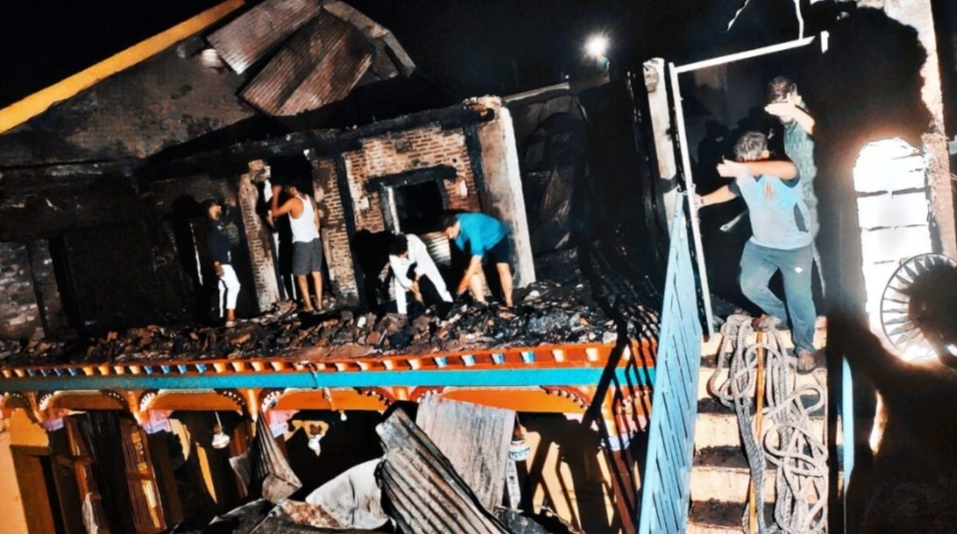 आमोदा येथील राममंदिराला लागलेल्या आगीत जिल्हा बँक शाखाही जळून खाक