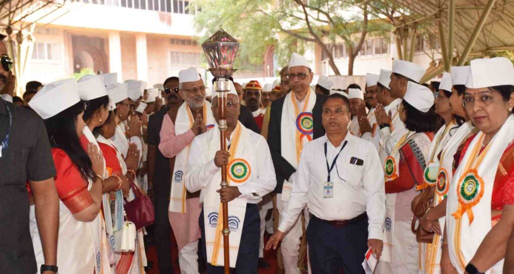 विद्यापीठ अनुदान आयोगाचे अध्यक्ष प्रा. एम. जगदीश कुमार यांनी आपल्या दीक्षांत भाषणात भारताला सन २०४७ पर्यंत विकसित देश बनविण्यासाठी पदवीधरांनी प्रयत्न करावेत असे आवाहन केले. नवीन राष्ट्रीय शैक्षणिक धोरणाच्या माध्यमातून अनुसूचित जाती, जमाती, इतर मागास वर्ग आणि आर्थिक दृष्ट्या कमजोर असलेल्या वर्गाला गुणवत्तापूर्ण शिक्षण देण्याचा प्रयत्न असून आर्थिक कारणांमुळे शिक्षणात बाधा येवू नये यासाठी विविध योजना राबविल्या जात आहेत अशी माहिती त्यांनी दिली. डॉ. बाबासाहेब आंबेडकर यांनी संविधानाच्या माध्यमातून सामाजिक न्याय, समानता तसेच सांस्कृतिक वारसा याबद्दल मांडलेल्या विचारांना केंद्रस्थानी ठेवून हे शैक्षणिक धोरण राबविले जात आहे. भारतीय भाषा व भारतीय ज्ञानाला प्रोत्साहन दिले जात आहे. विद्यापीठ अनुदान आयोगाच्या माध्यमातून कौशल्याधारीत शिक्षण देण्यासाठीचा आराखडा तयार करण्यात आला आहे असे प्रा. जगदीश कुमार म्हणाले. सन २०४७ पर्यंत भारताला महासत्ता करण्यासाठी एकत्रित काम करावे, भारतीय असल्याचा अभिमान बाळगा, आपल्यातील क्षमतांचा शोध घ्या आणि नागरिक म्हणून आपले कर्तव्य ओळखा असे आवाहन पदवीधरांना उद्देशून त्यांनी केले.