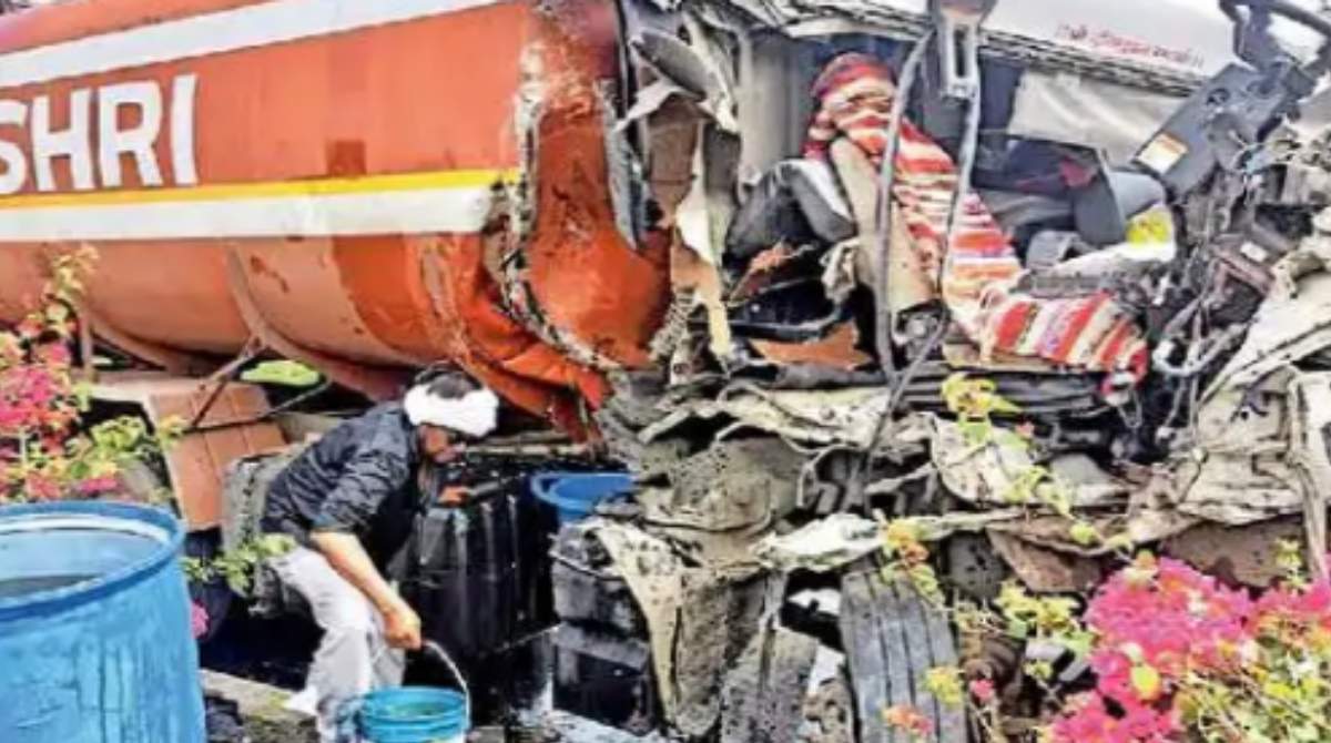 भुसावळकडून मुक्ताईनगरकडे जाणारा ट्रक नादुरुस्त झाल्याने महामार्गाच्या कडेला उभा होता. यावेळी ट्रक नादुरुस्त असल्याने ते पाहण्यासाठी चालक नदीम नसीम खान (रा. नागपूर) हा ट्रक खाली उतरला होता. त्याचवेळी मागून भरधाव वेगाने आलेला १२ चाकी टँकरने मागून जोरदार धडक दिली. समोरील ट्रक न दिसल्याने चालक कुंभकरण (रा. अमेठी, उत्तर प्रदेश) याने मागून ट्रकला जोरदार धडक दिली. या धडकेत टँकरच्या केबिनचा अक्षरश: चुराडा झाला असून, चालक कुंभकरण अडकला होता.
